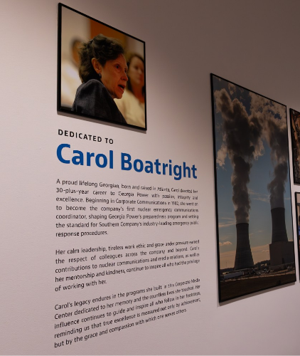 “Carol’s role was a pioneering one that required calm under pressure, a willingness to learn, and a deep commitment to the safety of our customers and communities,” said Georgia Power President, Chairman, and CEO Kim Greene during the dedication ceremony. “Her work shaped the programs, standards, and culture of nuclear communications readiness we rely on today, and her legacy lives on in the people she influenced. I’m honored to help dedicate our Corporate Media Center to her memory.”