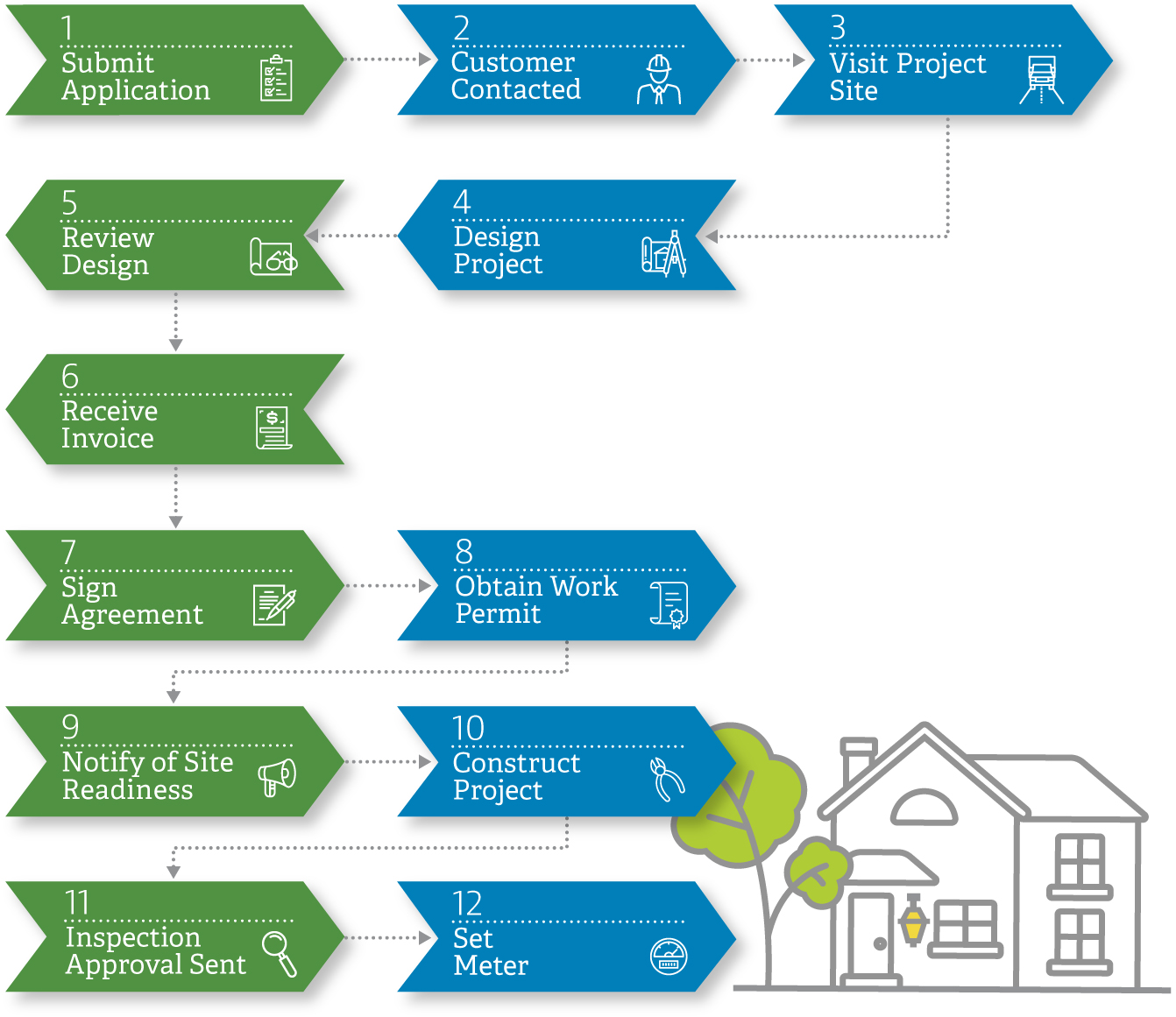 For our customers or builders who are building where there has never been service before, this guide should help you understand the sequence of events, stakeholders, and responsibilities of each party.