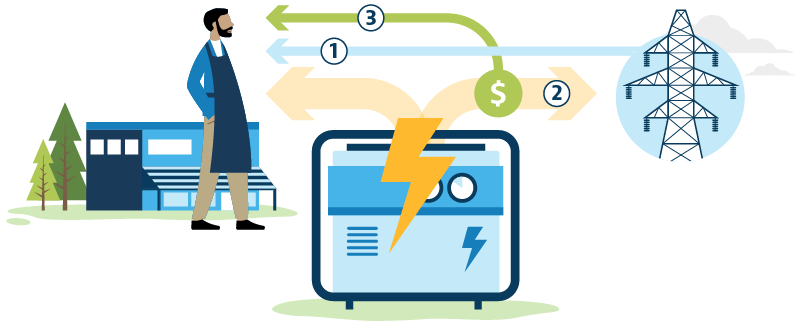 During a system peak event your facilities would 1 shift usage onto the DER assets, in exchange for 2 energy credits based on the 3 energy returned to the grid.