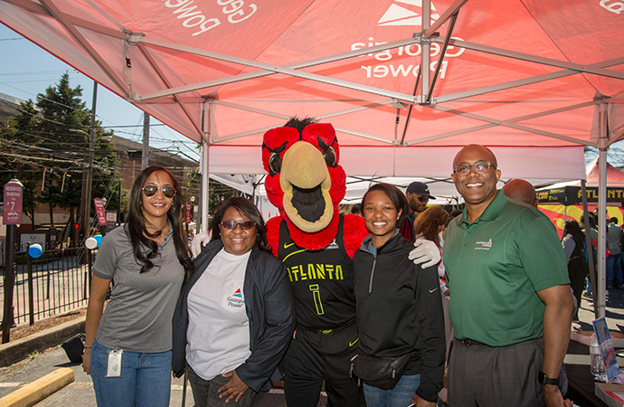 In partnership with the Atlanta Hawks, Georgia Power held a pop-up event at Clark Atlanta University's campus in late February 2018. They were joined by Georgia Power's employee resource group, VOICE, to share career advice and opportunities available at Georgia Power.