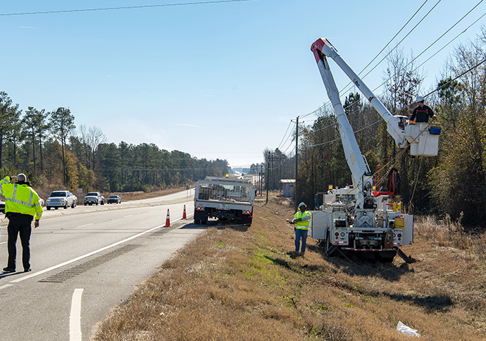 In July of 2016, utility vehicles were included in Georgia’s “Move Over Law,” which requires drivers to move over one lane when crews are working on the roadside. The addition of utility workers to the law will help to ensure safety for linemen who may be working on the roadside at night or following severe weather to repair damaged equipment or restore power for customers. If drivers are unable to move over, they should slow down below the speed limit and be prepared to stop.