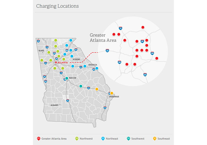 To accommodate the growing number of EVs on Georgia roads and highways, the company installed 36 public EV charging locations across the state. From Savannah to Rome, Georgia Power public charging islands feature multiple options for EV drivers including a DC fast charger (CHADeMo/SAE combo plugs) as well as a dual port Level 2, 208/240-volt charger. The charging islands accept either a Georgia Power Card, powered by ChargePoint and available at GeorgiaPower.Chargepoint.com, or an existing ChargePoint card.