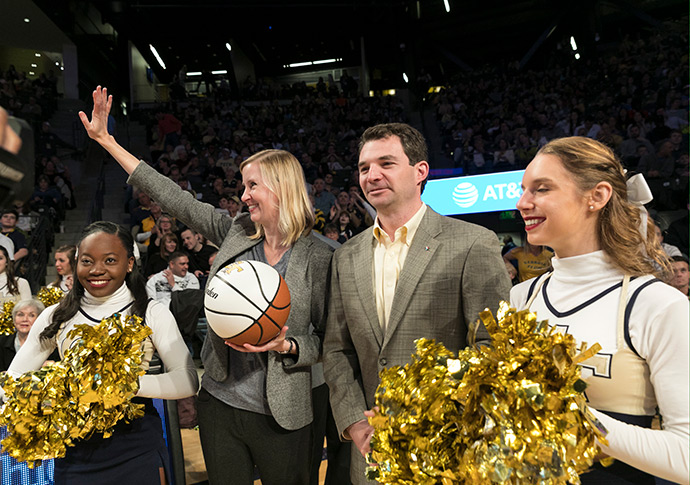 Georgia Power supports many initiatives through the state's university system, including Georgia's favorite college teams. Through a continued partnership with Georgia Tech, the company sponsored Georgia Tech's Professors of Excellence - a special recognition of those professors that go above and beyond in their teaching, specialty fields or communities. During Georgia Tech's 2017-2018 basketball season, these outstanding individuals were presented with a game ball and congratulated by one of Georgia Power's executive team at a special ceremony during the game.