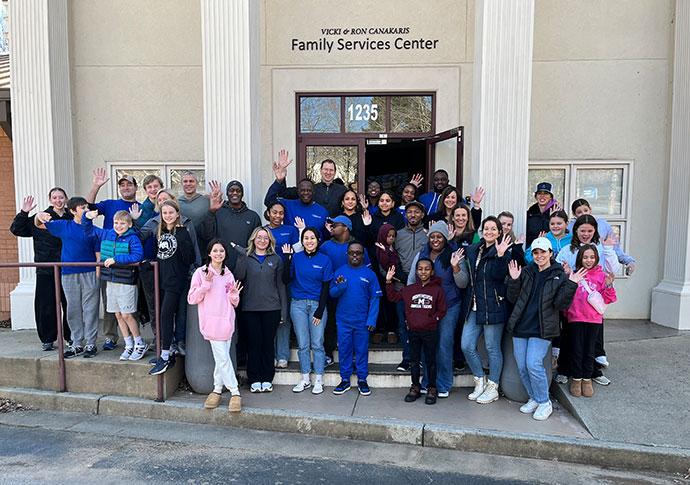 One of Monday’s projects was at Mary Hall Freedom Village in Sandy Springs where nearly 40 volunteers spent the morning organizing supplies, classrooms, and offices. Established in 1996, Mary Hall Freedom Village provides therapy and housing for women and their children struggling with addiction, substance abuse, and homelessness. Currently, more than 1,000 women and children are assisted annually, with more than 18,000 women served over nearly 30 years.
