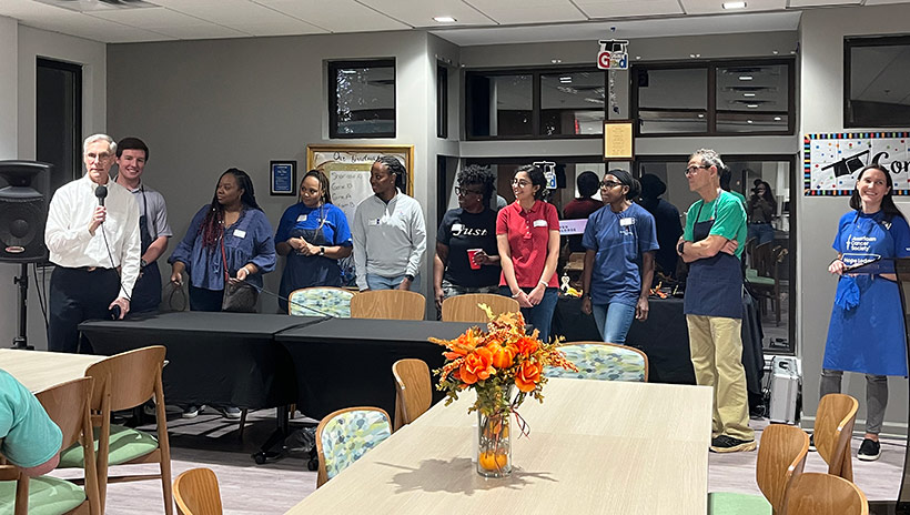 In early November, more than a dozen Georgia Power employees visited Atlanta’s Hope Lodge to serve an early Thanksgiving dinner and kick off the holiday season. In addition to personally purchasing and preparing rotisserie chicken, mashed potatoes, green beans, macaroni and cheese, and three types of pie, Georgia Power employees donated gift cards and prizes for the residents to play a round of trivia.