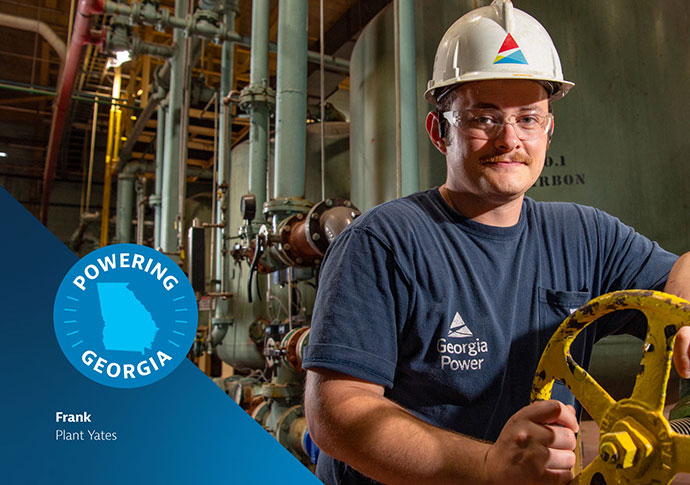 Newnan native Frank, or “Tate,” is proud to be a chemical technician at Plant Yates. After recently celebrating his one-year anniversary with the plant, the husband and father said it feels good to now settle into a work family who not only cares about him, but also the millions of Georgia Power customers they are privileged to serve.