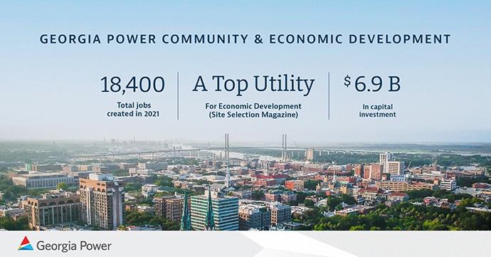 This recognition is based on capital investment and job creation activity from corporate facility investment projects last year and evaluated on a cumulative and per-capita basis. In 2021, the Georgia Power Community & Economic Development (C&ED) team, working alongside its state partners, located 110 facilities which resulted in a record $6.9 billion in capital investment. This represented an increase of more than $1 billion over 2020 figures. This was noted as one of the highest number of projects seen in the C&ED history and helped support creation of 18,400 jobs.