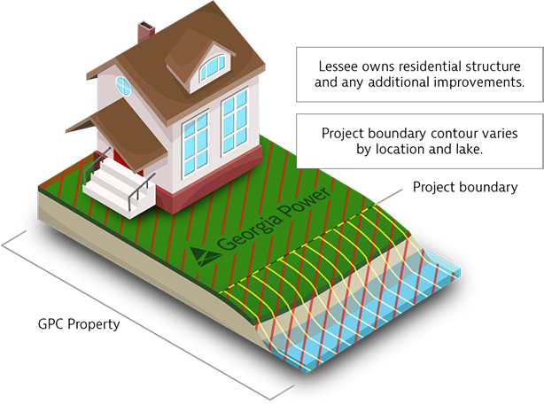 Georgia Power owns the land/lot and lessee owns any improvements (dwelling, shoreline structures). An annual fee applies.