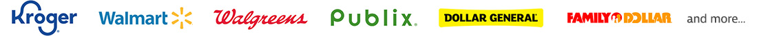 Kroger Walmart Walgreens Dollar General Family Dollar and more...