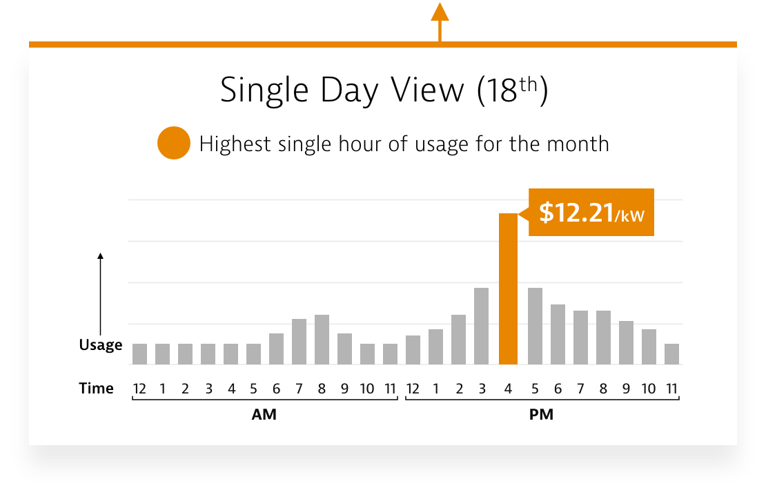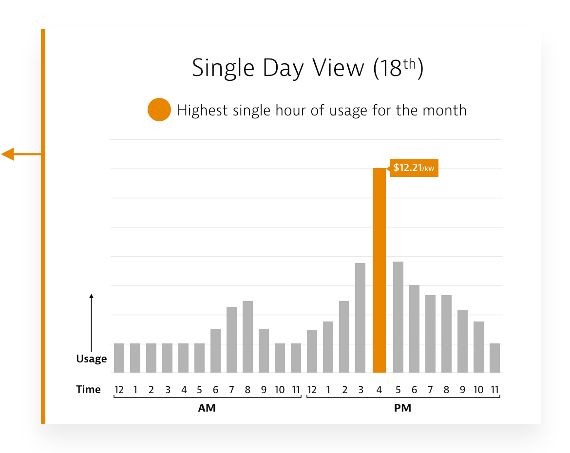 Smart Usage customers are charged $12.21 per kW during the highest usage hour during a billing period. This charge incentivizes Smart Usage customers to plan when and how they use energy.