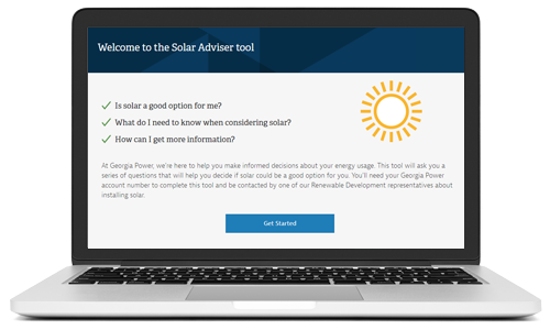 We offer a Solar Advisor tool that will ask you a series of questions to help you decide if a solar installation could be a good option for you. You will need your Georgia Power account number to complete this tool with the option to be contacted about installing solar. With your Georgia Power account number handy, please select "View Tool" below, to visit our Solar Advisor Tool and determine if solar is a viable option for your home.